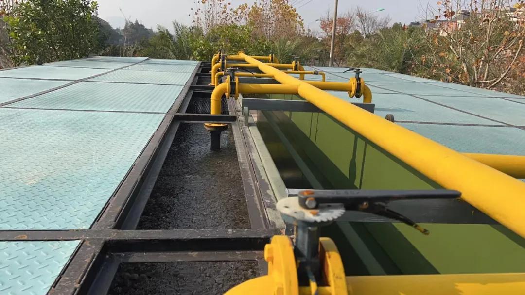 此次安裝的初期雨水設(shè)備,采用的高效脫氮-超速凈化增氧裝備一體化污水處理工藝。由水泵將河水由提至高效生化脫氮一體機(jī)內(nèi),通過高效生化一體機(jī)內(nèi)的大量的馴化細(xì)菌,在兼氧、好氧微生物的新陳代謝作用下,去除污水中的各類污染物。然后將生化出水注入超速凈化一體機(jī),與除磷及絮凝藥劑充分混合,后經(jīng)沉淀作用使泥水分離,污泥進(jìn)入污泥池脫水減量化后外運(yùn)處置。為節(jié)約空間、減少運(yùn)行成本,此次設(shè)備采用一體化設(shè)備模塊式處理,在外觀上這兩臺(tái)設(shè)備更像兩個(gè)鐵皮箱,并對(duì)降低噪音作了優(yōu)化處理。